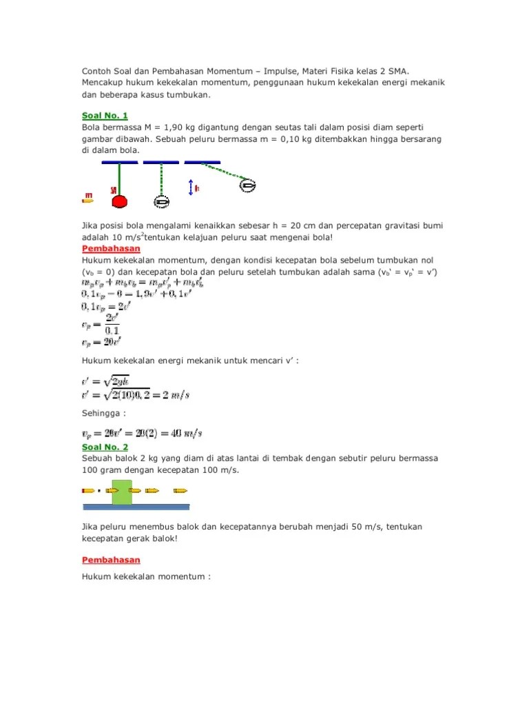 Rangkuman materi momentum dan impuls kelas x/10. Pada video sebelumnya, saya sudah membahas materi impuls dan momentum, sedangkan video ini saya membahasa contoh soal impuls dan momentum. 2) sebuah benda yang mengalami impuls akan mengalami perubahan momentum Contoh soal momentum & impuls #6 | mencari impuls dari sebuah grafik. Indikator pencapaian kompetensi menjelaskan konsep momentum .